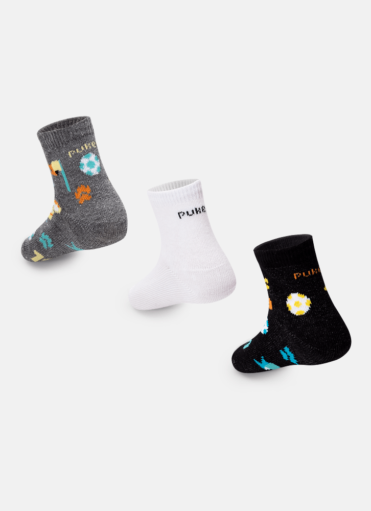 Kit com três pares de meias em algodão macio, sendo duas com desenhos divertidos e uma em cor lisa. Possuem cano confortável de altura média. Indicação de uso: ? Ideal para ser usada com tênis e sapatos. Instruções de Lavagem: ? Lavagem a mão ? Não alvejar Instruções de Conservação: ? Não secar em tambor ? Não passar ? Não limpar a seco (MAIS INFORMAÇÕES, VIDE NA ETIQUETA) Instruções de Garantia: ? Deverá ser encaminhado dentro na embalagem original; acompanhado de nota fiscal e com todos os itens constante na solicitação da compra.