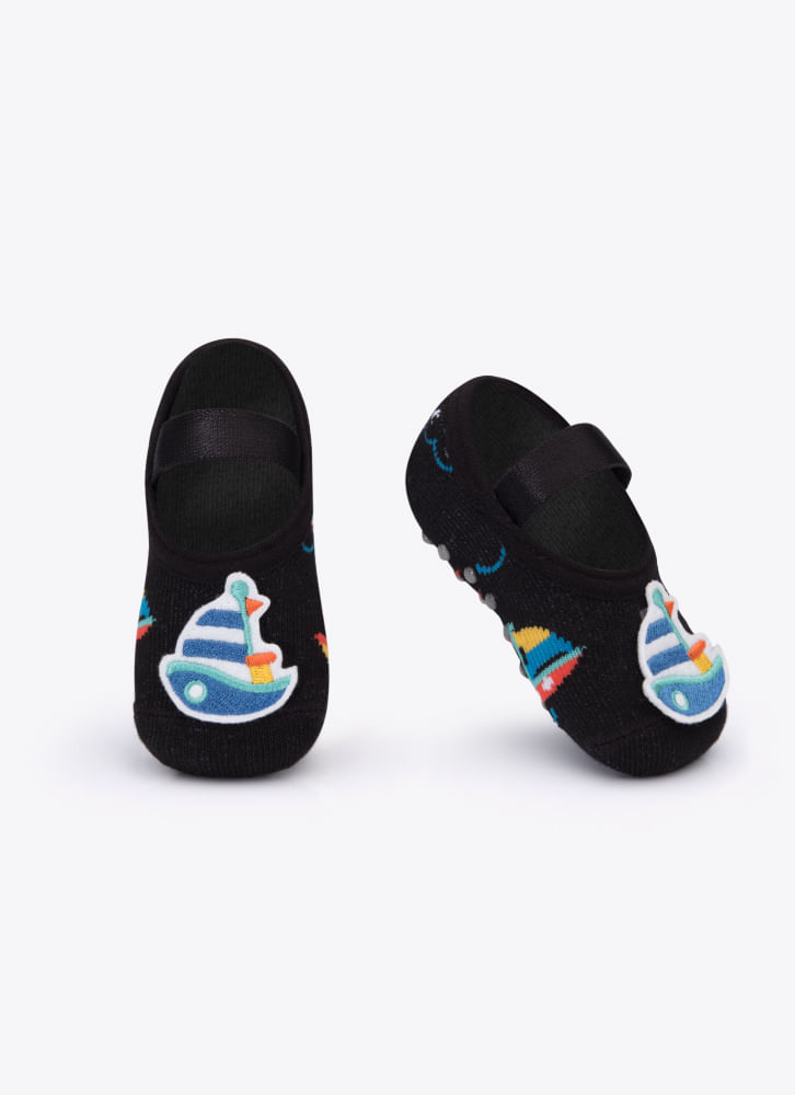 Meia Sapatilha com Antiderrapante Bebê Menino Barco
