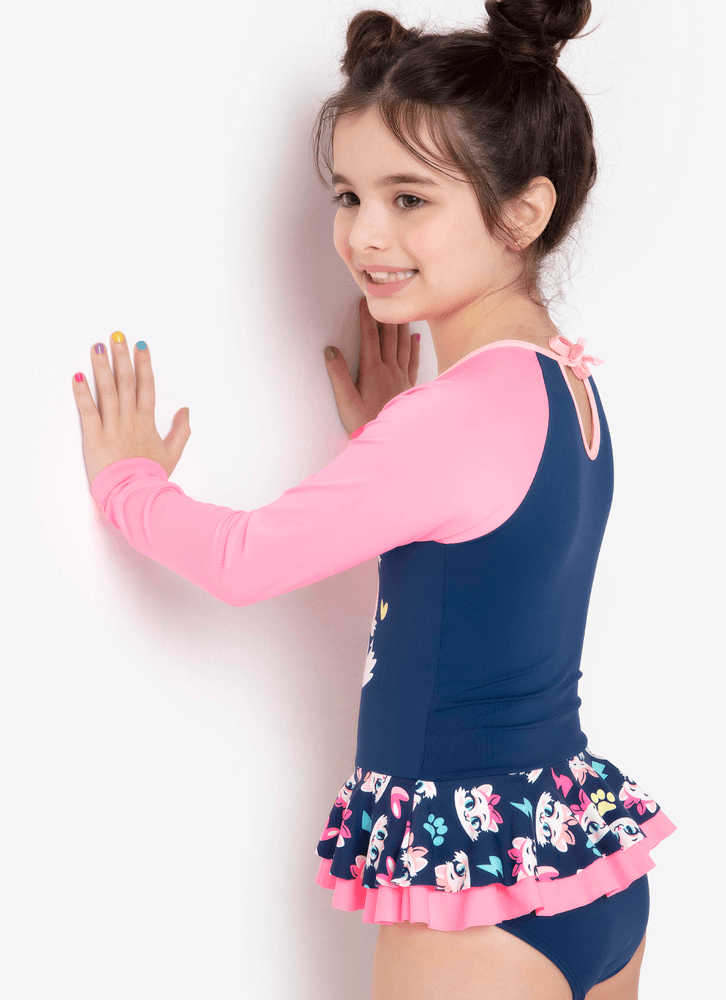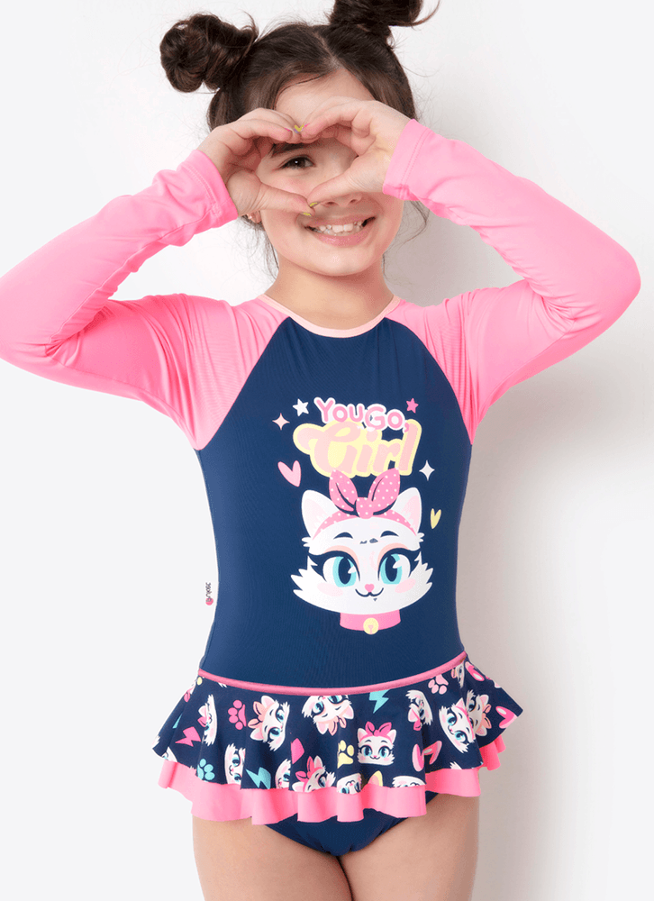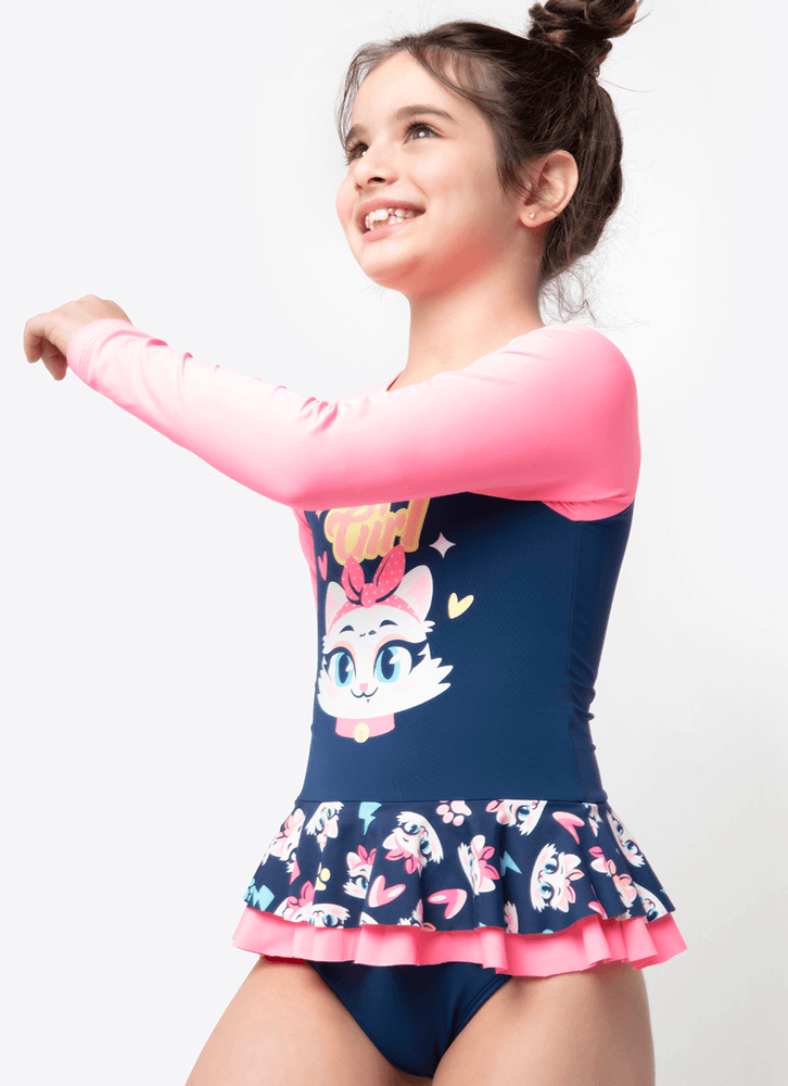 Maiô Manga Longa Menina Gata Power