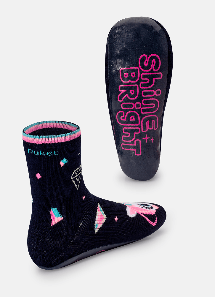 Meia Soquete Feminino com Sola Emborrachada Unicórnio Shine