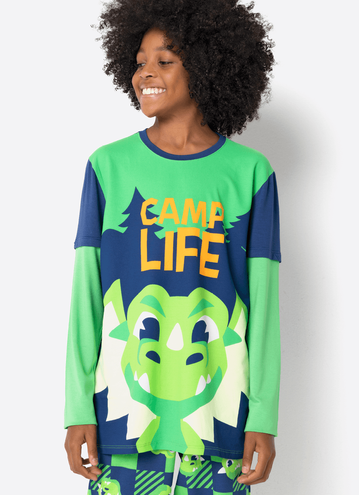 Pijama Manga Longa Menino Teen Dragão Camping