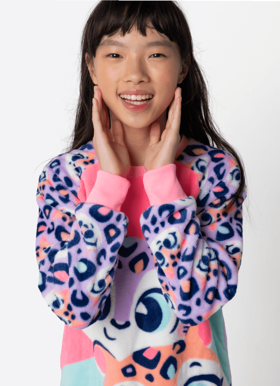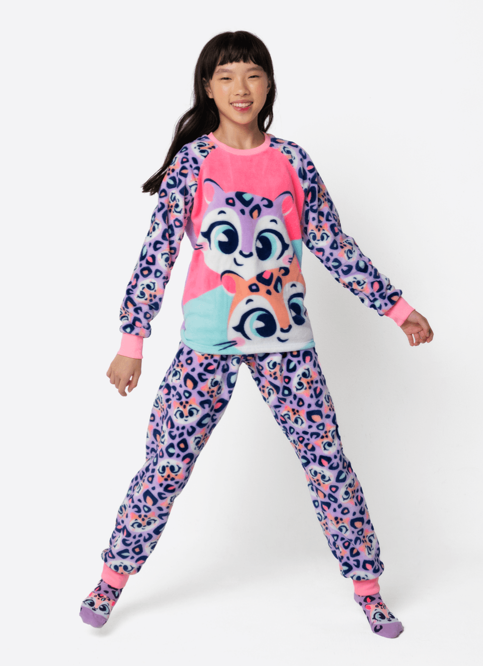 Pijama em coral fleece com estampa de Onça Fantástica Puket <3