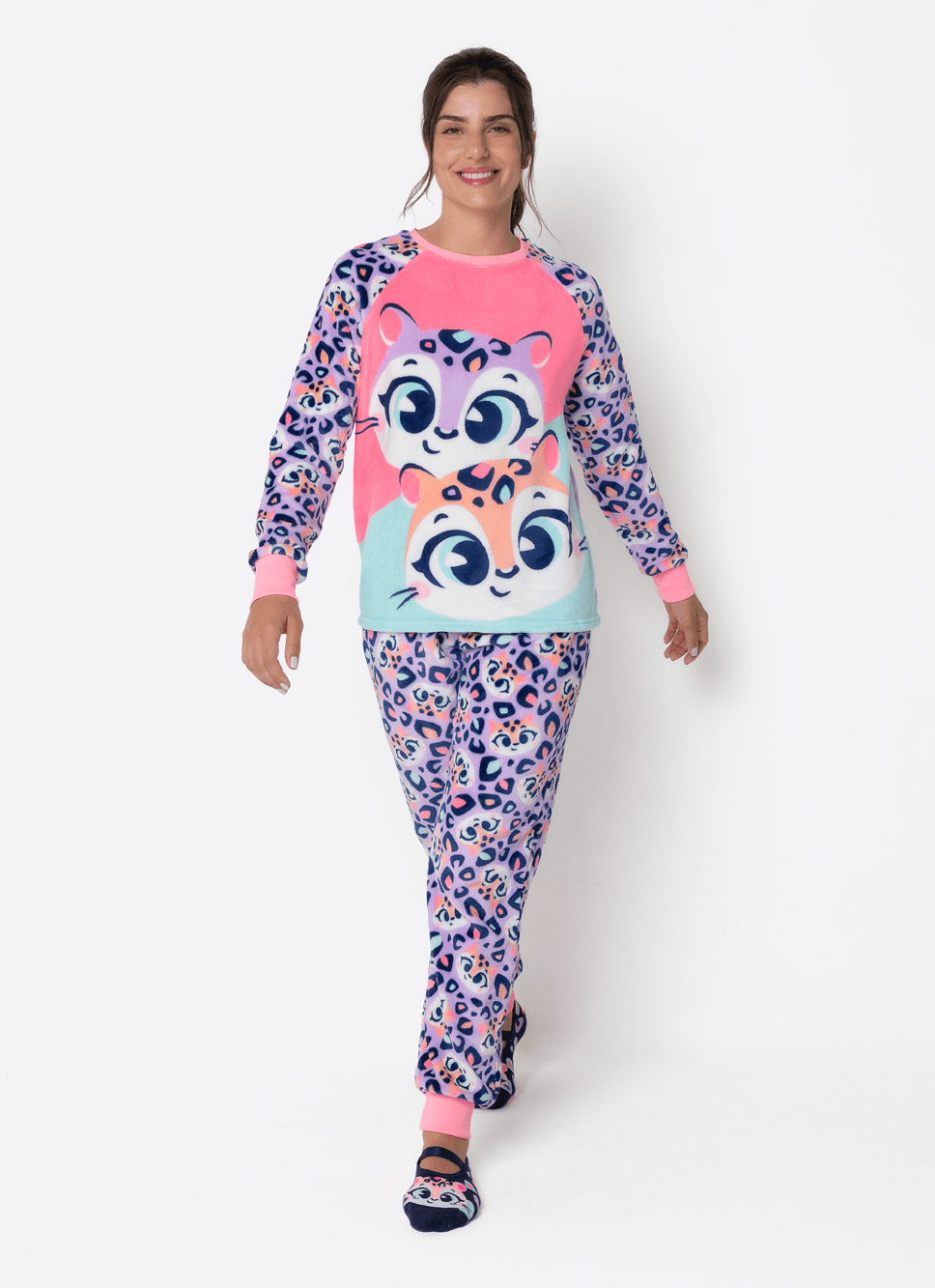 Pijama Manga Longa Soft Feminino Onça