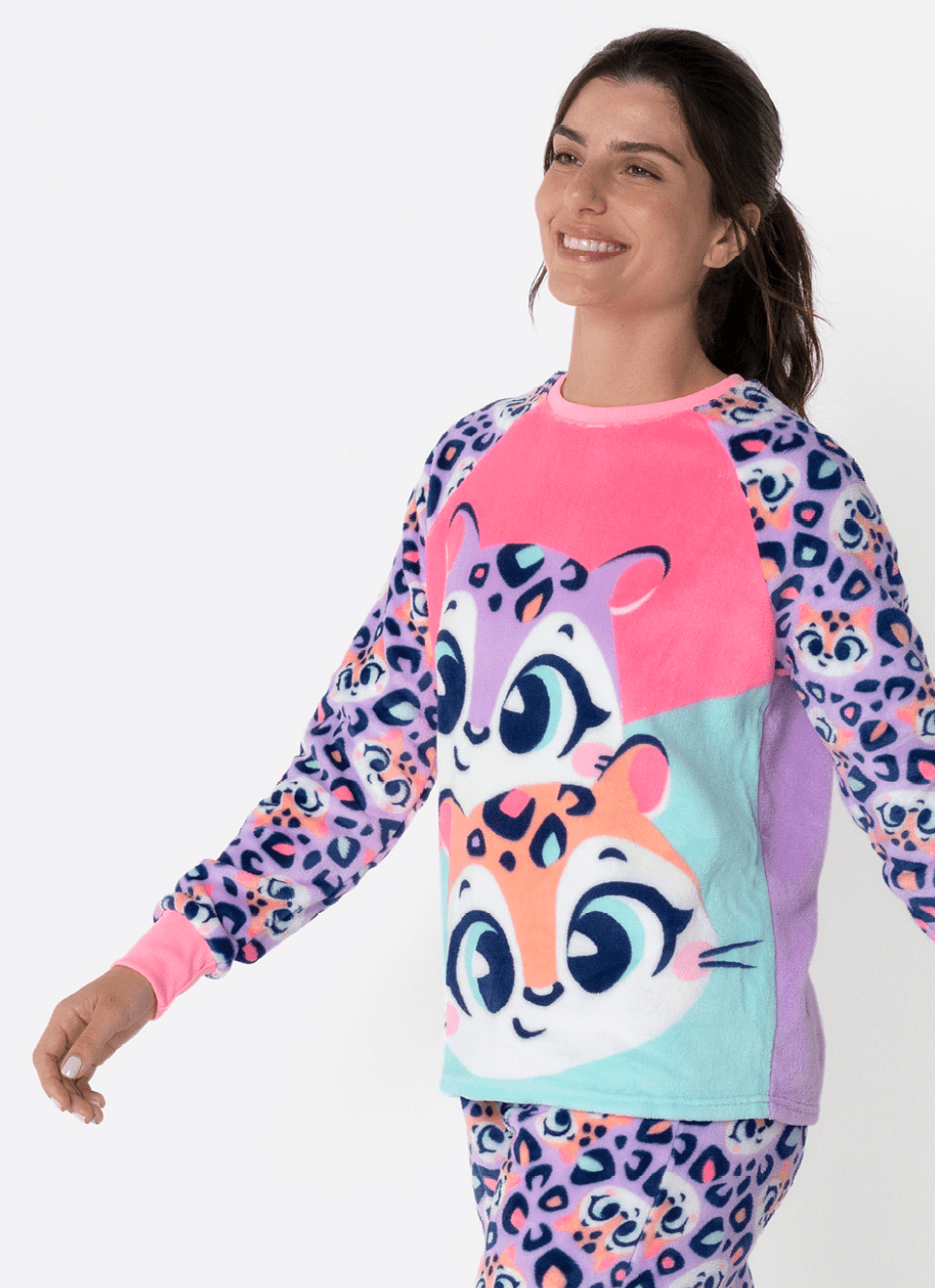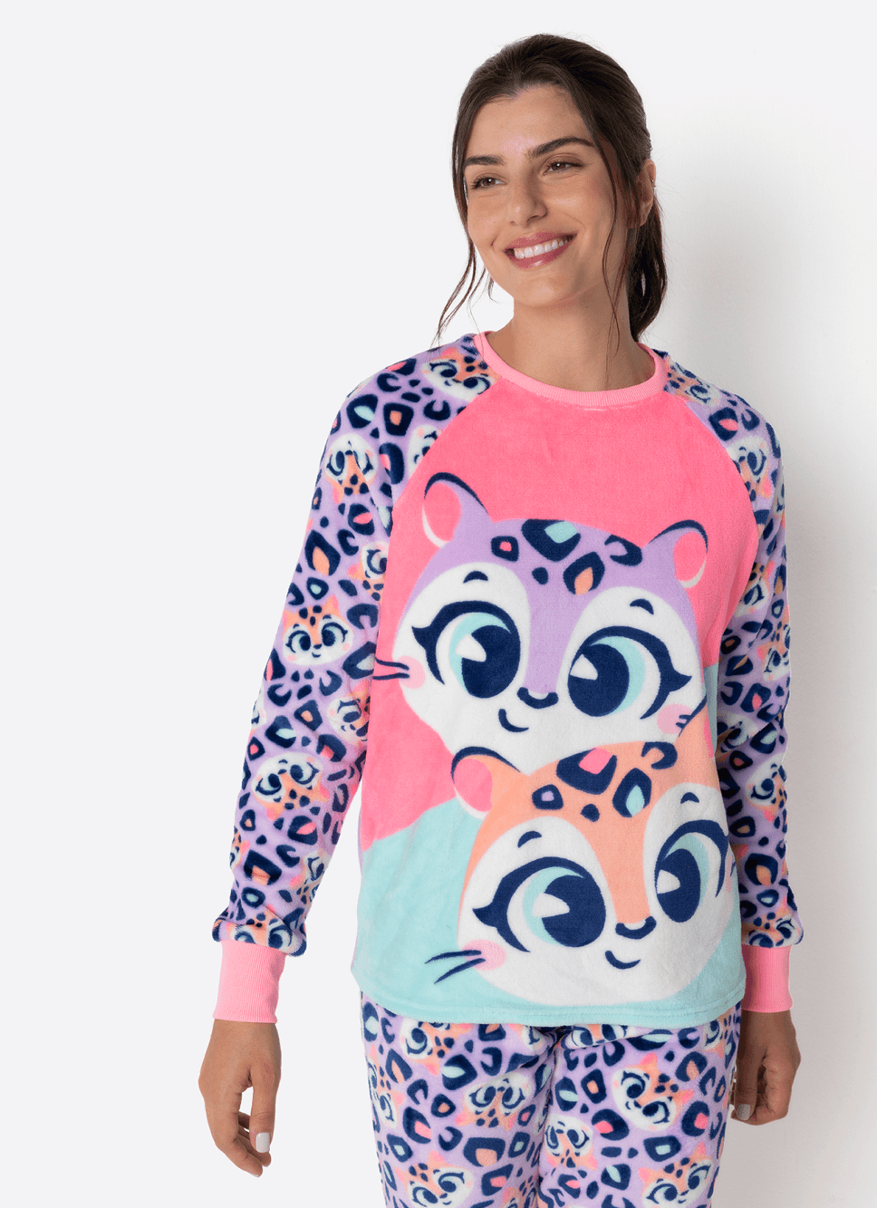 Pijama em coral fleece com estampa de Onça Fantástica Puket <3