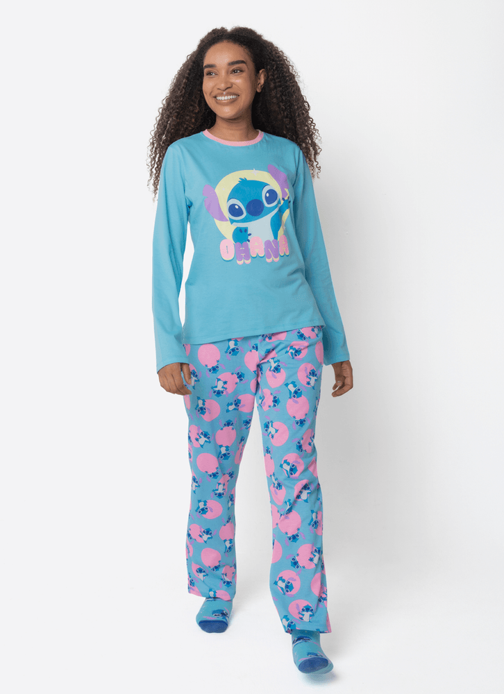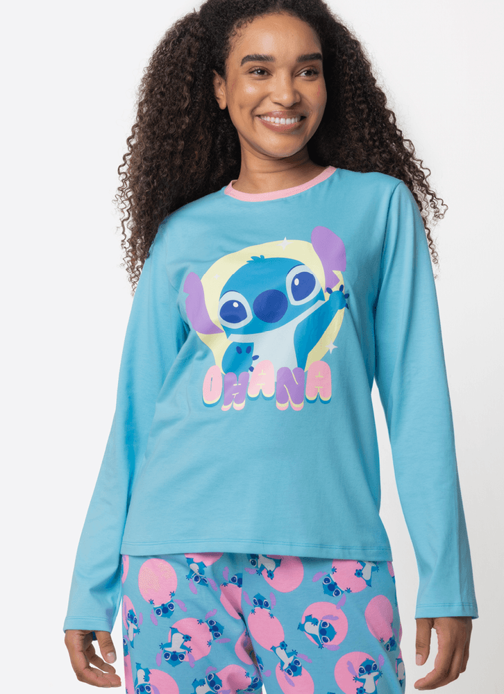 Pijama Manga Longa Algodão Feminino Stitch