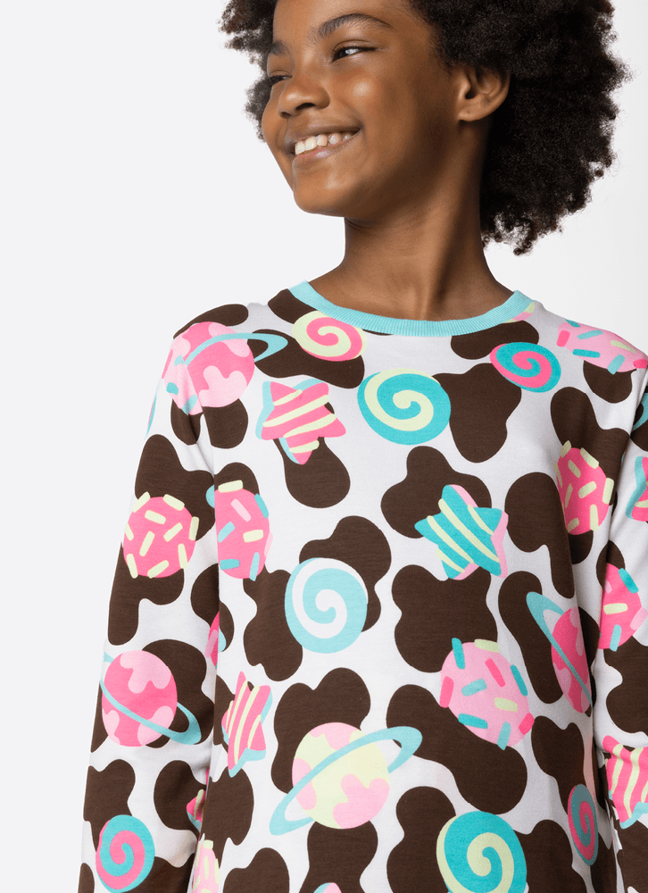 Pijama Manga Longa Menina Teen Vaca Chocolate