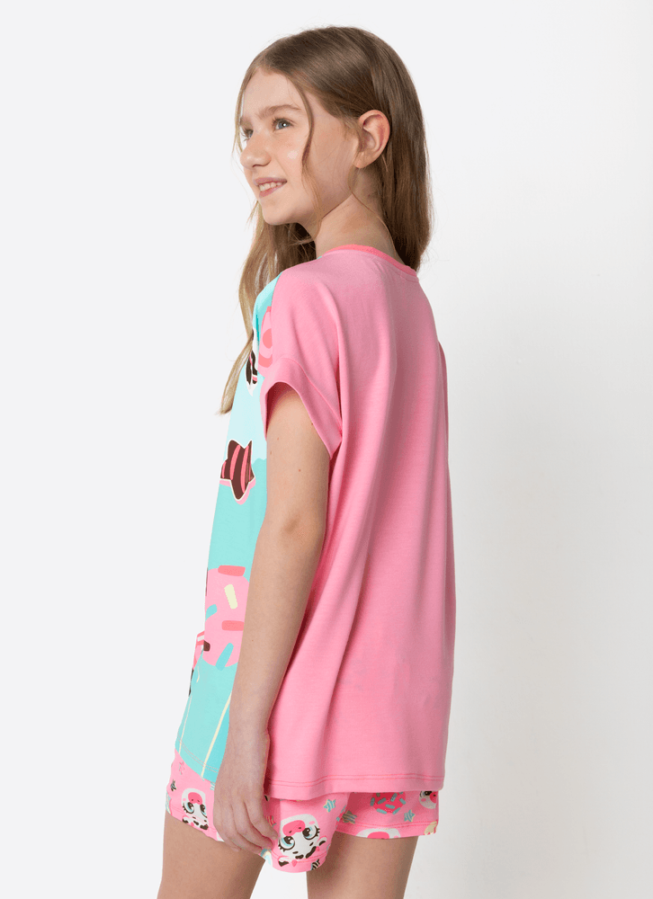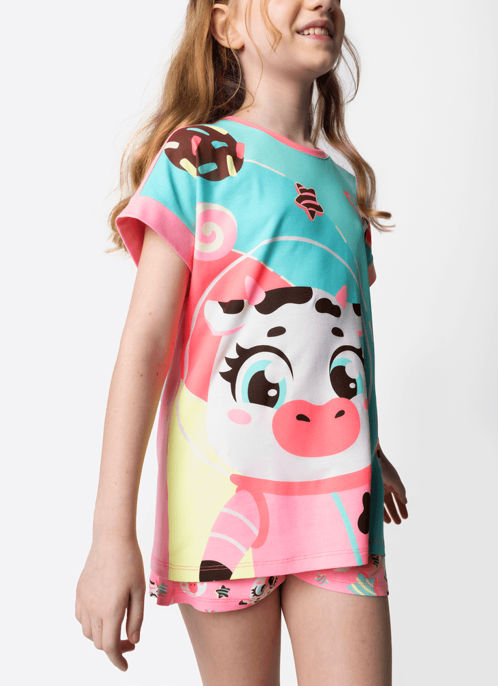 Pijama Manga Curta Menina Teen Vaca Chocolate