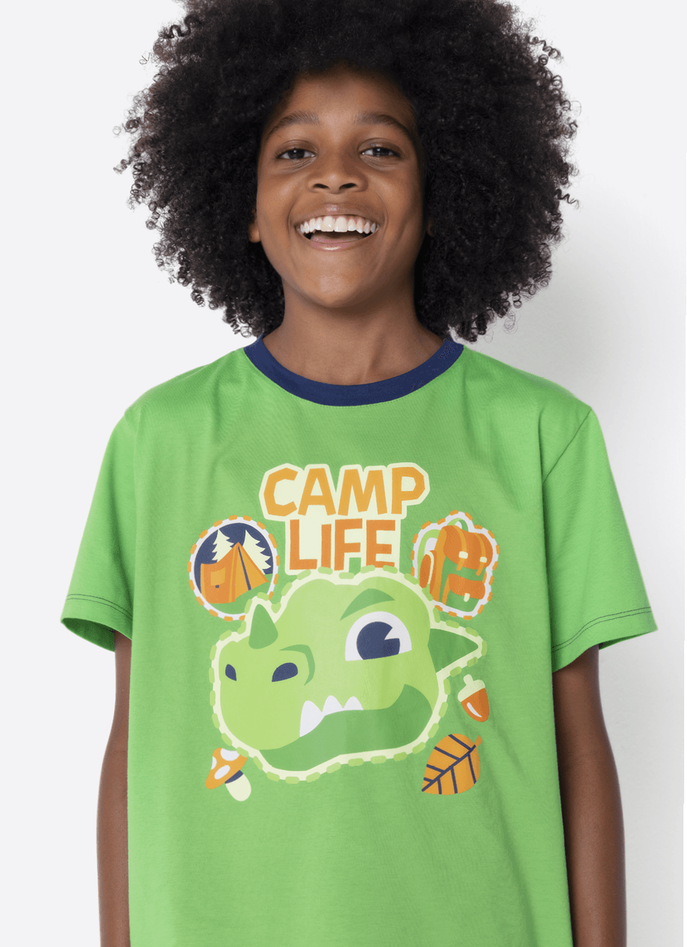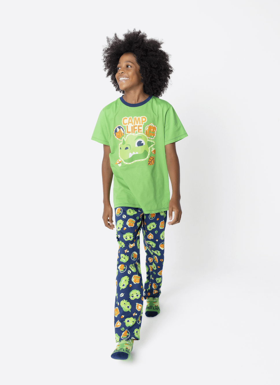 Pijama Manga Curta Algodão Menino Teen Dragão Camping