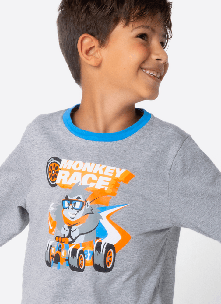 Pijama Manga Longa Algodão Menino Gorila Racing