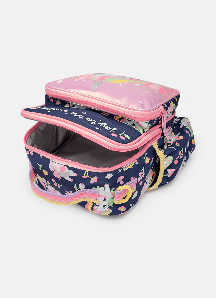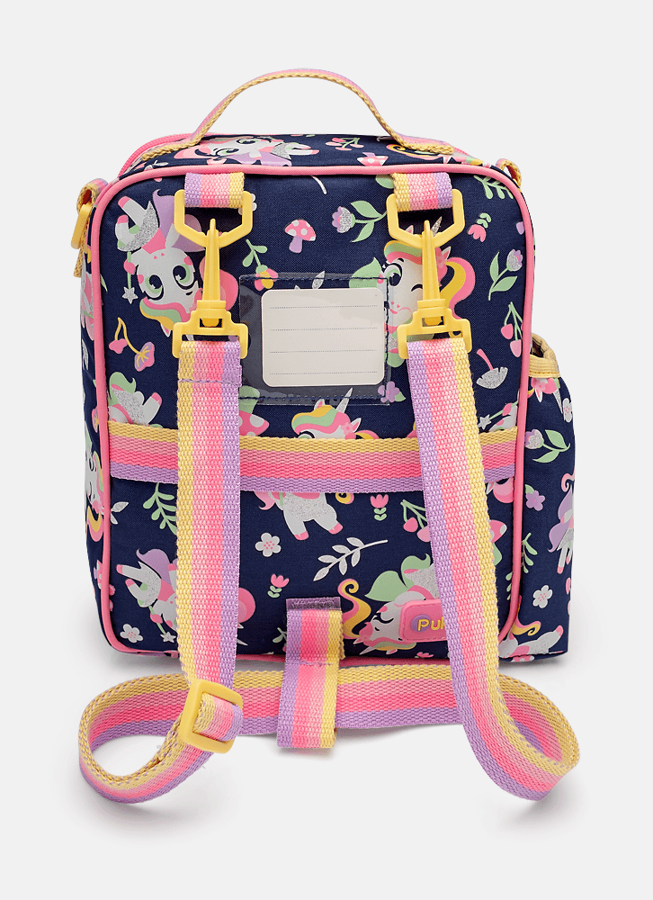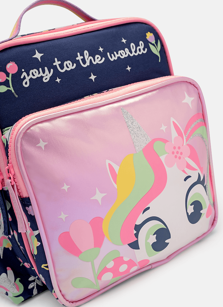 Lancheira em nylon, sem gel, com forro térmico. Possui bolso frontal médio em PU com holográfico e estampa localizada de Unicórnio. Alça de mão fixa e alça de ombro com regulagem. Tamanho: Único Medidas: 20,5cm x 25cm x 13cm (LxAxP) Cor: Azul Marinho Indicado para: Crianças / adolescentes / adultos Ocasião: Escolar / passeio / trabalho Material externo: Poliéster (nylon) Material diferenciado: PU holográfico Material Interno: PEVA térmico Alça de ombro fixa ajustável e de mão fixa Fechamento com zíper Capacidade: 2,5 litros Peso suportado: 1 kg Peso do produto: 380g Compartimentos: compartimento principal grande e 1 bolso frontal. Limpeza e conservação: Para limpeza, não lavar com escova abrasiva; lavar à mão com sabão neutro e água corrente; lavar separadamente as cores fortes das claras; não utilizar produtos abrasivos como cloro e água sanitária; não deixar a peça de molho; secar à sombra; não passar o ferro. Garantia: deverá ser encaminhado dentro da embalagem original; sem indicações de uso; acompanhado de nota fiscal e com todos os itens constante na solicitação da compra. Resistente à agua: não Certificação INMETRO: Produto certificado por BRICS OCP 0098 Nº Registro 010213/2024