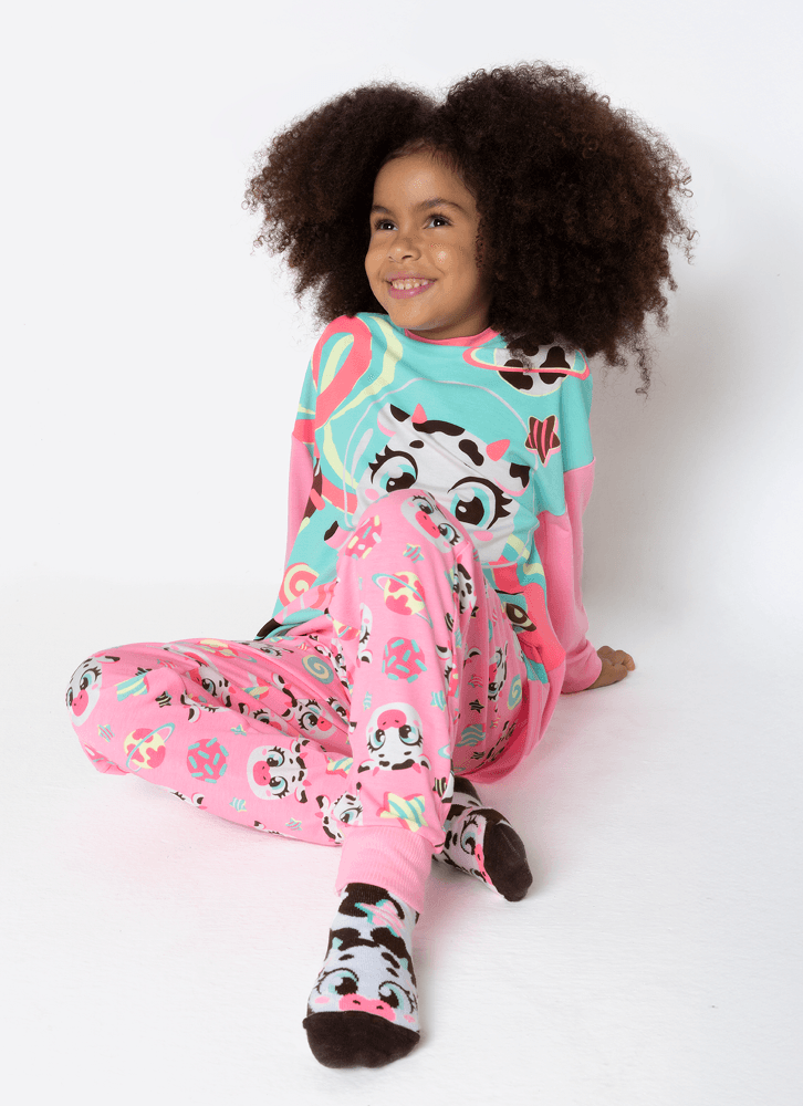 Pijama Manga Longa Viscolycra Menina Vaca Chocolate