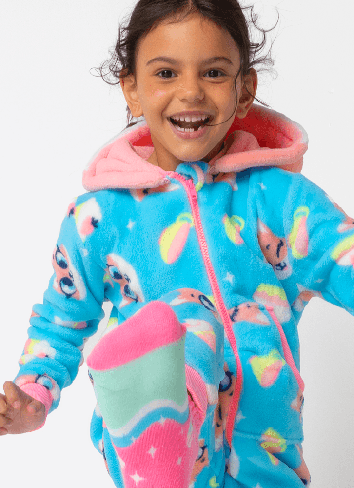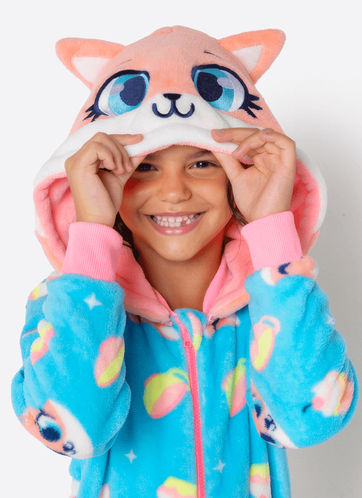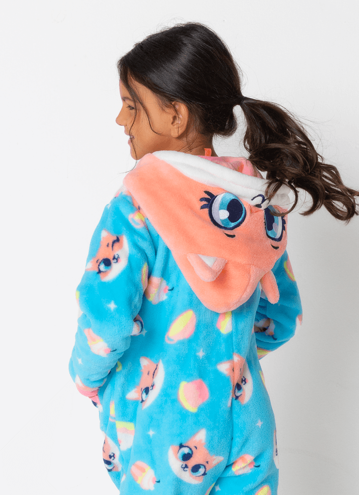 Macacão em coral fleece com estampa do Raposa confeiteira Puket <3