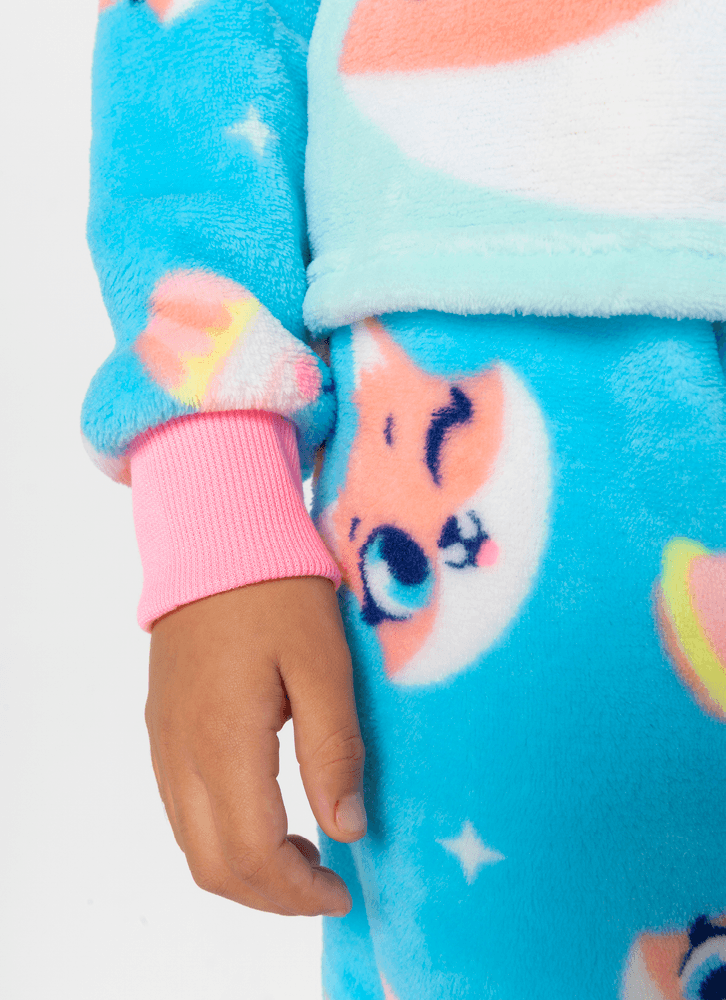 Pijama em coral fleece com estampa de Raposa confeiteira Puket. Ideal para aconchegar noites frias. Possui toque macio devido a sua característica felpuda o que torna o pijama super quentinho e confortável. Detalhes: Mangas longas com punhos em ribana; Estampa frontal sem toque; Gola redonda; Calça estampada com elástico macio na cintura; Calça modelagem reta com punhos em ribana; Lavagem e conservação: Lavagem à mão; não alvejar; não secar em tambor; não passar; não limpar a seco (para mais informações, consulte a etiqueta fixada ao produto). Garantia: Deverá ser encaminhado dentro da embalagem original; sem indicações de uso; acompanhado de nota fiscal e com todos os Itens constante na solicitação da compra.