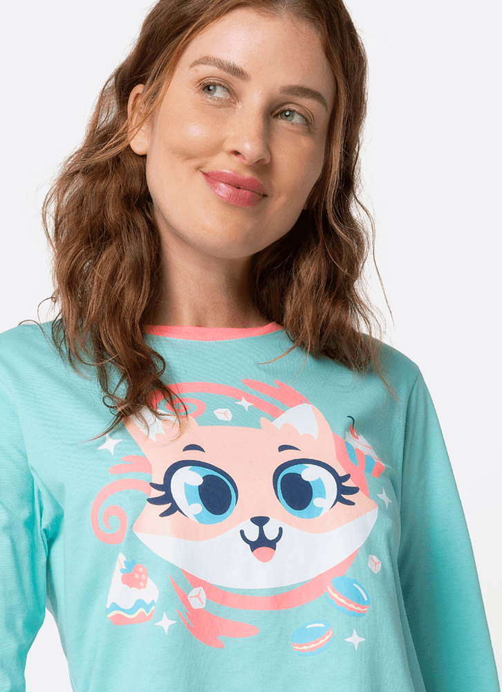 Pijama Manga Longa Algodão Feminino Raposa Confeiteira