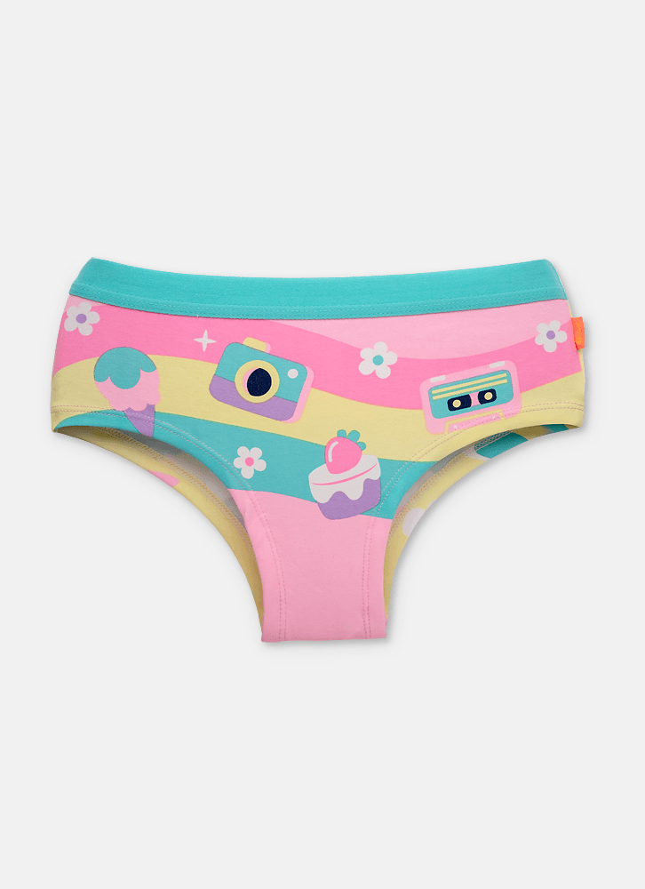 • Calcinha modelo Caleçon • Estampa de arco-íris e lettering • Tecido Externo: 96% Algodão 4% Elastano • Forro: 100% algodão • Acabamento em elástico macio em contraste • Como lavar e conservar bem meu produto: Lavagem a mão, Não alvejar, Não secar em tambor, Secagem em varal por gotejamento a sombra Não passar ou utilizar vaporização, Não limpar a seco, Não limpar a úmido • Garantia por defeito: Deverá ser encaminhado dentro da embalagem original; Sem indícios de uso; acompanhado de nota fiscal e com todos os itens constantes na solicitação de troca