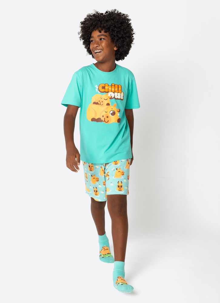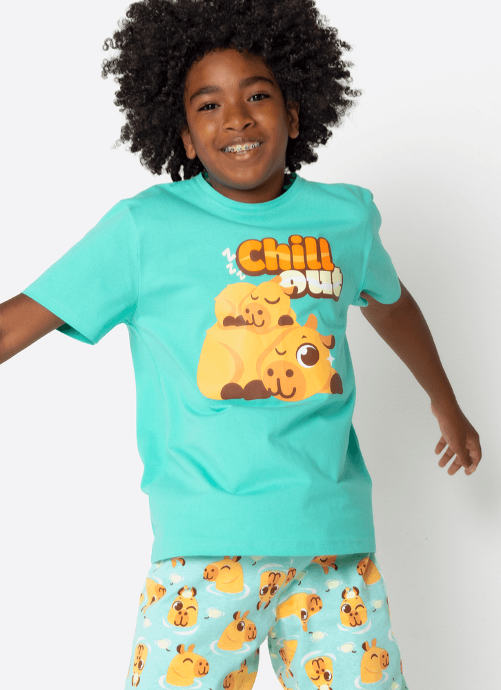 Pijama Manga Curta Algodão Menino Teen Capivara Vibes