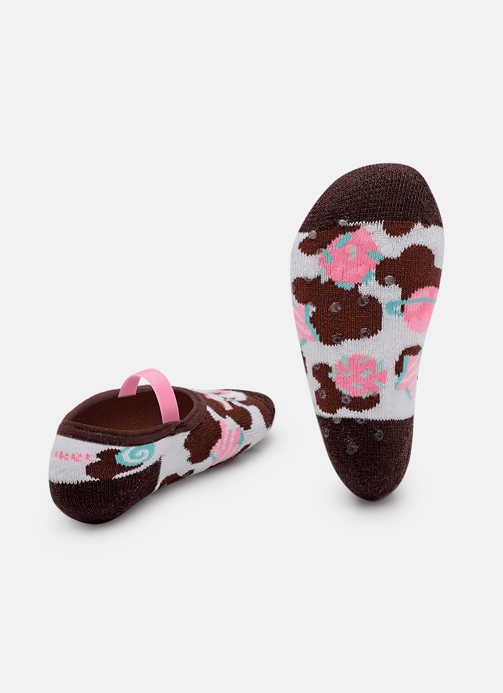 Meia Sapatilha Antiderrapante Bebê Menina Vaca Chocolate
