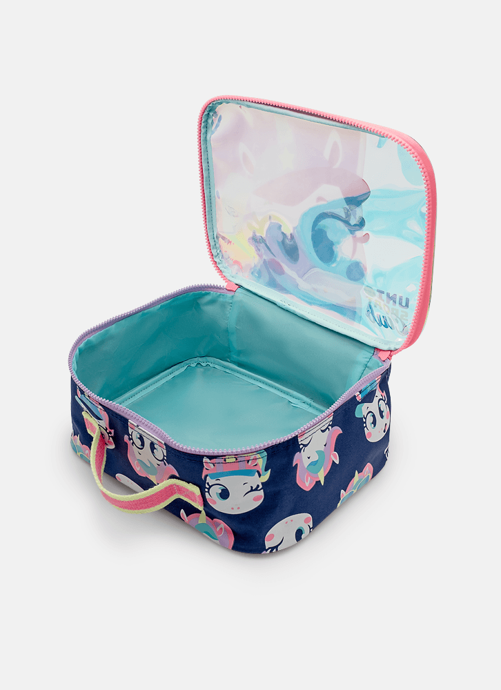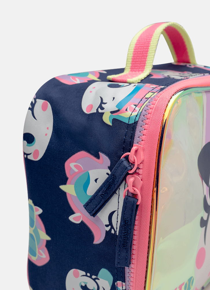 Nécessaire grande em nylon com estampa de unicórnio. Parte frontal em TPU holográfico com estampa localizada de unicórnio. Possui fechamento por zíper e alça de mão. Tamanho: Grande Medidas: 26 cm x 20 cm x 11 cm (LxAxP) Cor: Marinho Indicado para: Crianças / adolescentes / adultos Ocasião: Escolar / passeio / trabalho Material externo/interno: Poliéster (nylon) Fechamento: Com zíper Capacidade: 2 litros Peso do produto: 250g Compartimentos: 1 compartimento principal e 1 bolso interno Garantia: deverá ser encaminhado dentro da embalagem original; sem indicações de uso; acompanhado de nota fiscal e com todos os itens constante na solicitação da compra Limpeza e conservação: Para limpeza, utilize apenas pano umedecido com água morna e sabão neutro; nunca utilize produtos abrasivos, solventes ou quaisquer agentes químicos; evite contato com água do mar, areia e outros abrasivos; para secar utilize um pano seco e macio. Resistente à agua: não