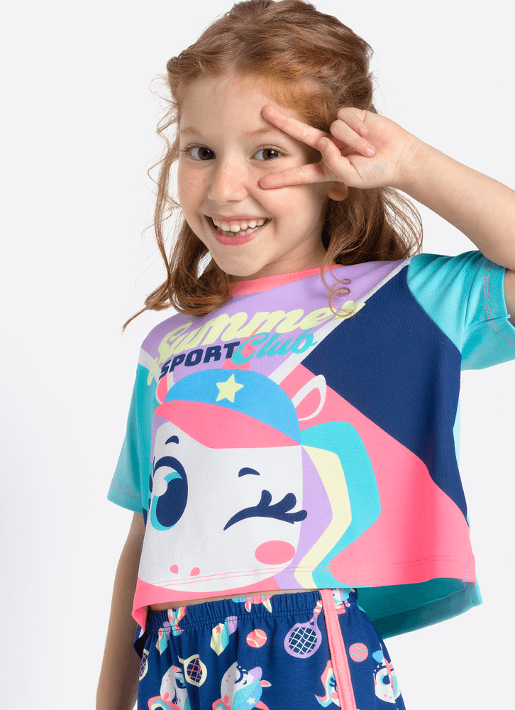 Pijama Manga Curta Viscolycra Menina Unicórnio Tênis