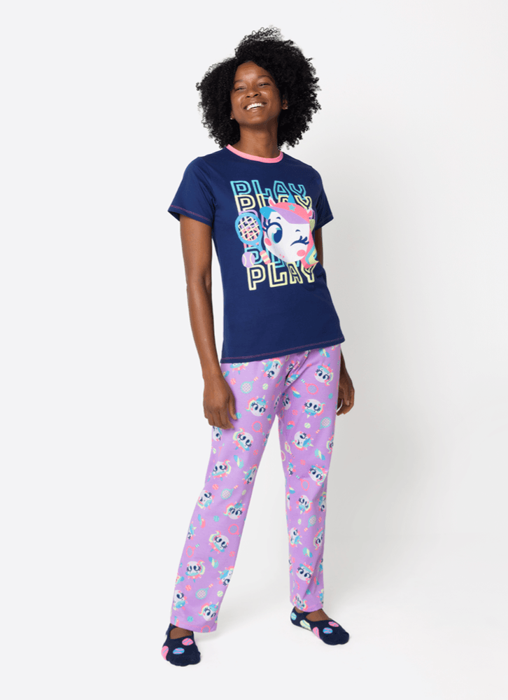 Pijama Manga Curta Algodão Feminino Unicórnio Tênis