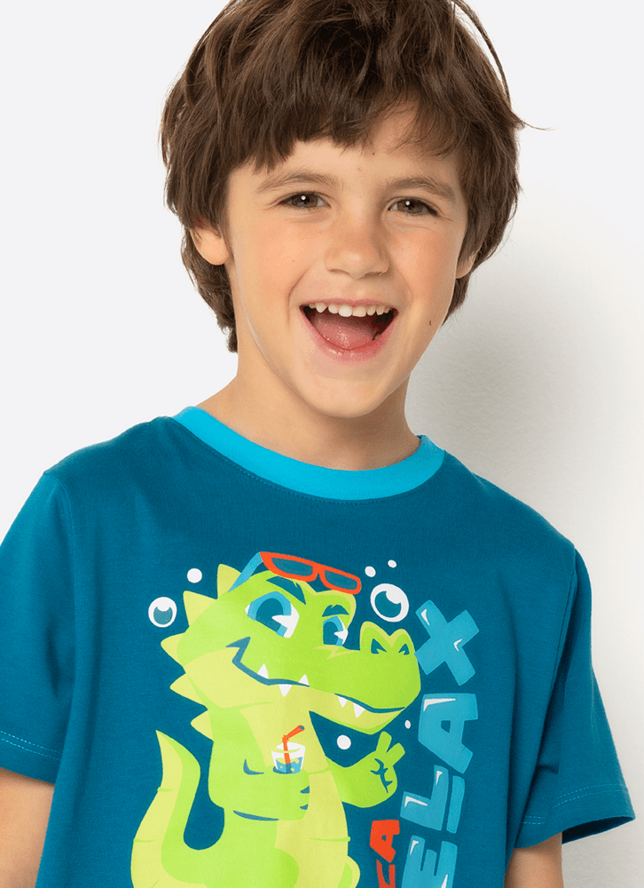 Pijama Manga Curta Algodão Menino Jacaré Relax
