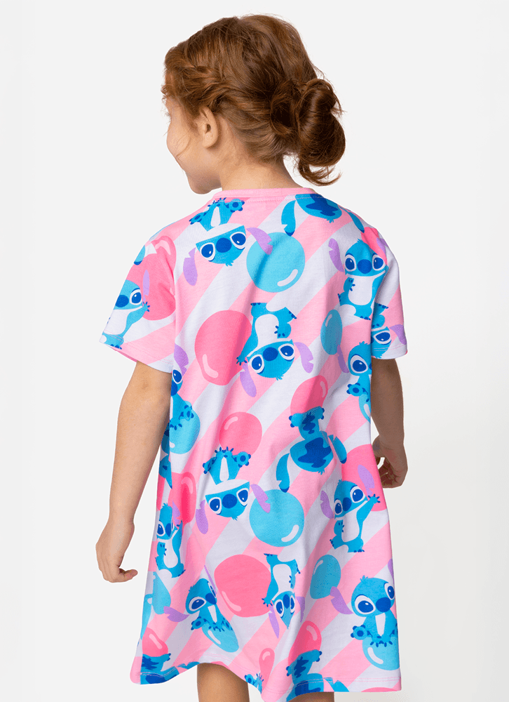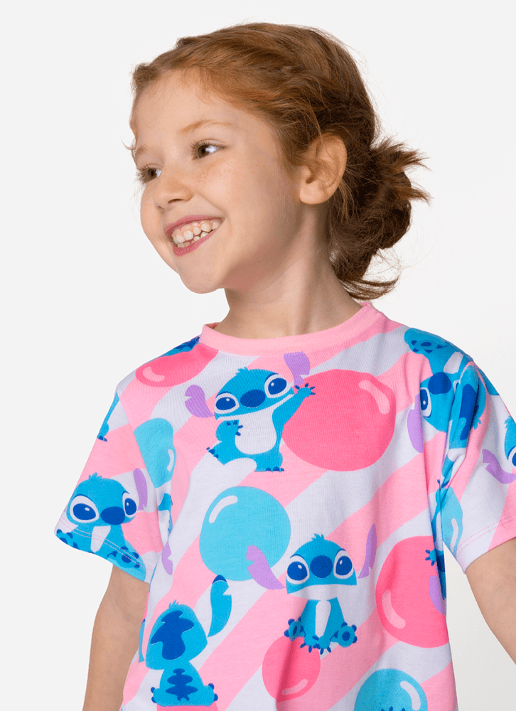 Camisola Manga Curta Algodão Menina Stitch