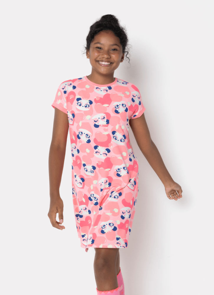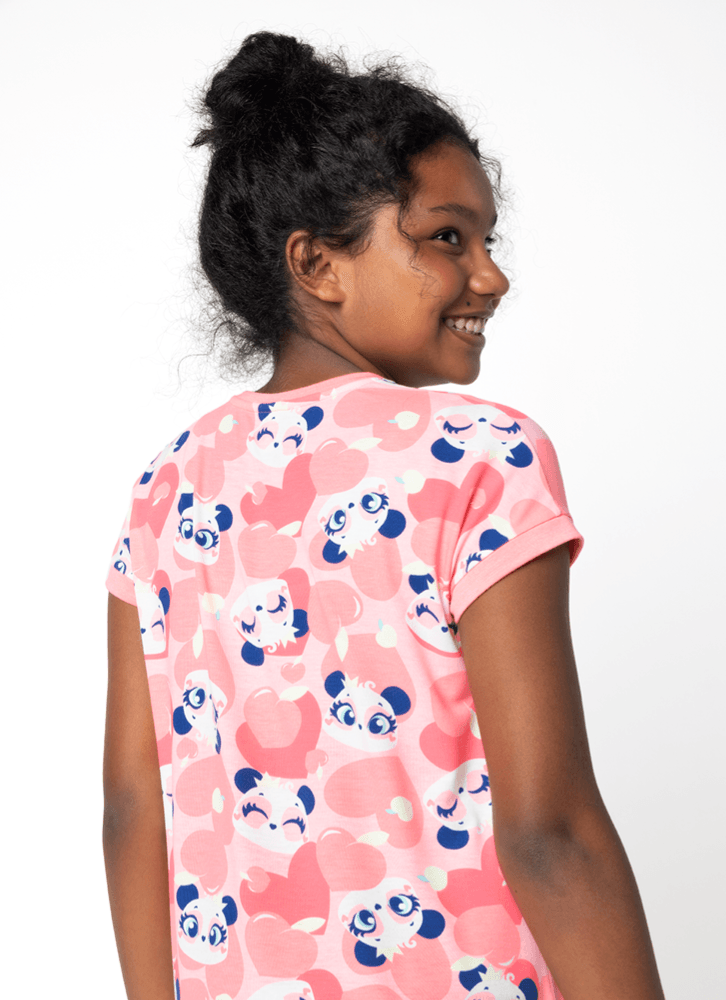 Camisola Manga Curta Viscolycra Menina Teen Panda Romântico