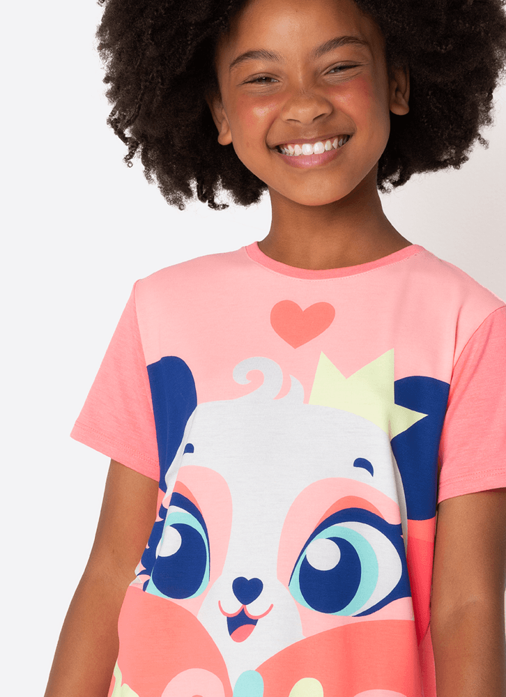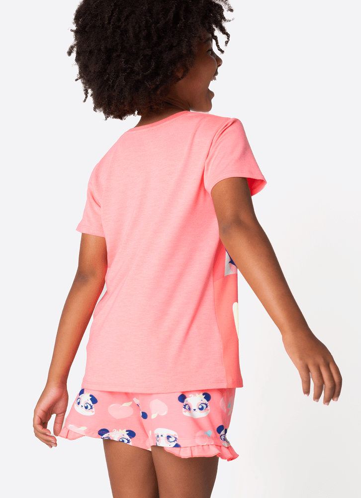 Pijama Manga Curta Viscolycra Menina Teen Panda Romântico