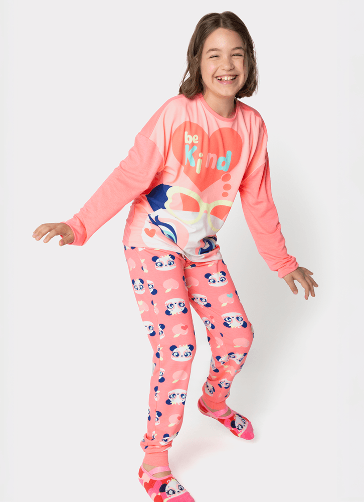 Pijama Manga Longa Viscolycra Menina Teen Panda Romântico