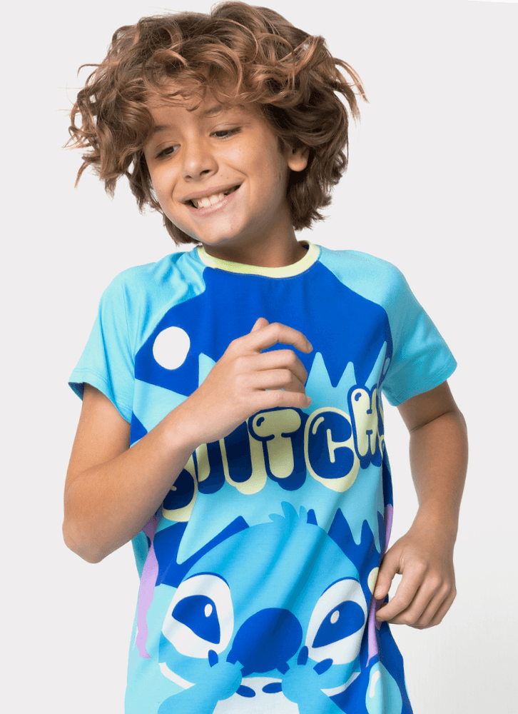 Pijama Manga Curta com estampa divertida e exclusiva Stitch Puket.