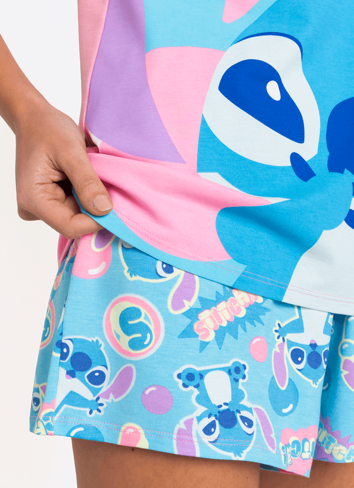 Pijama Manga Curta com estampa divertida e exclusiva Stitch Puket.