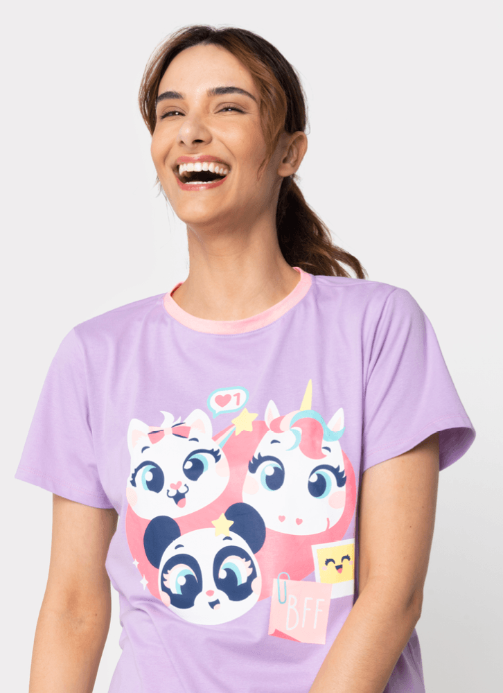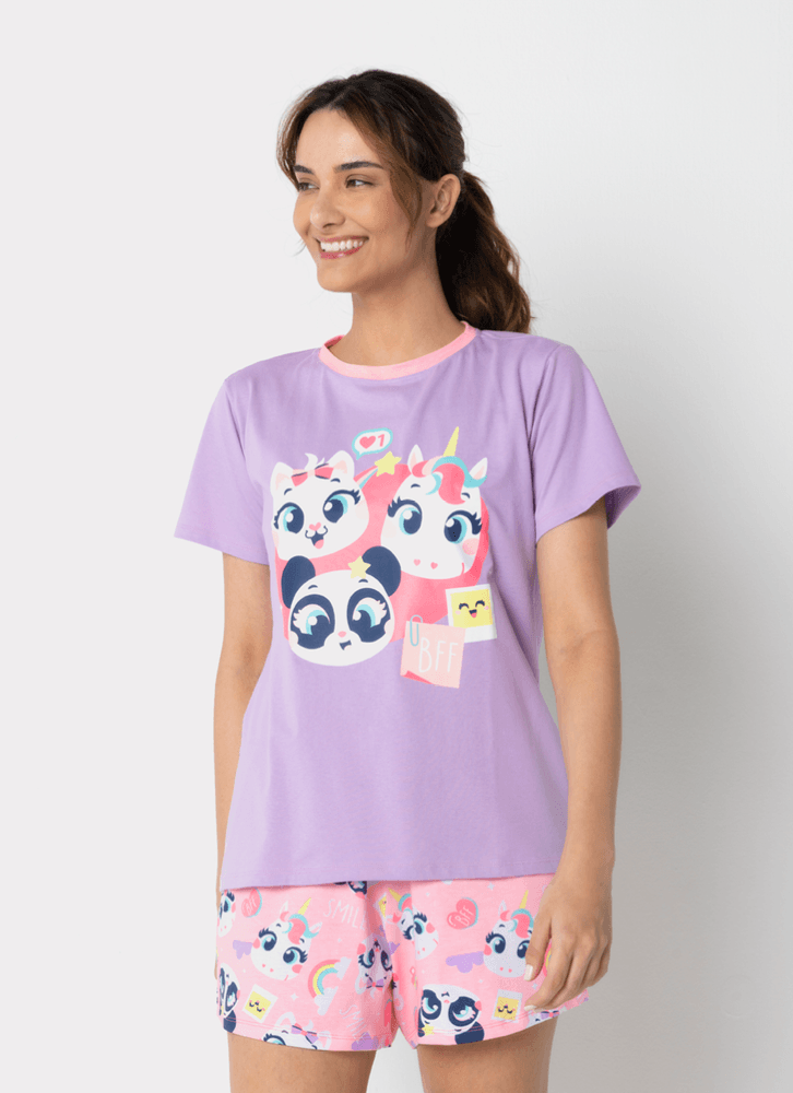 Pijama manga curta com estampa divertida e exclusiva Multi Bichos Best Friends Puket