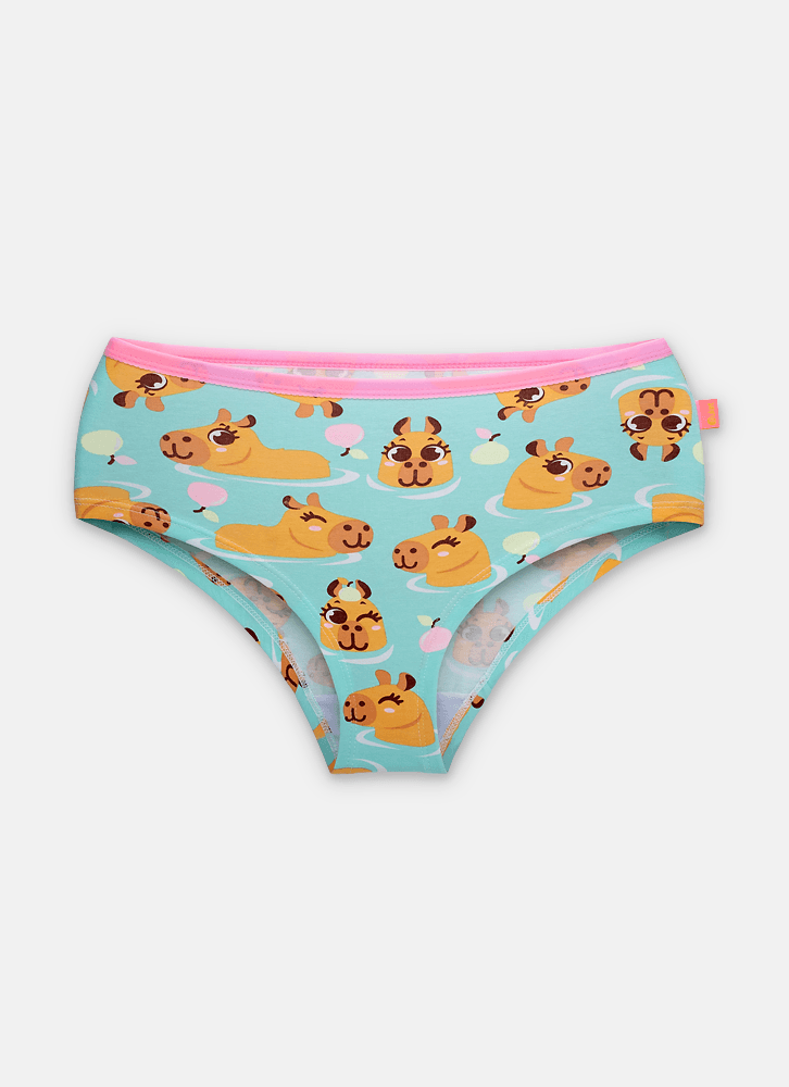 • Calcinha modelo caleçon • Estampa de capivara; • Tecido Externo: 95% Algodão 5% Elastano • Forro: 100% algodão • Acabamento em elástico macio em contraste • Como lavar e conservar bem meu produto: Lavagem a mão, Não alvejar, Não secar em tambor, Secagem em varal por gotejamento a sombra Não passar ou utilizar vaporização, Não limpar a seco, Não limpar a úmido • Garantia por defeito: Deverá ser encaminhado dentro da embalagem original; Sem indícios de uso; acompanhado de nota fiscal e com todos os itens constantes na solicitação de troca.'
