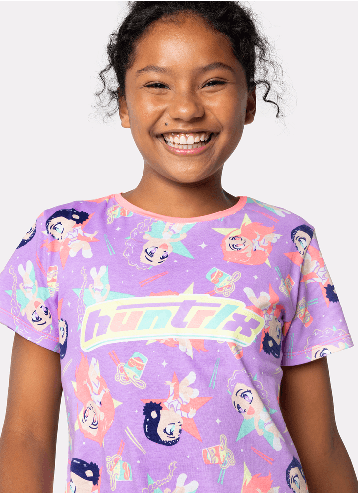 Camisola Manga Curta Algodão Menina Teen Guerreiras do K-Pop