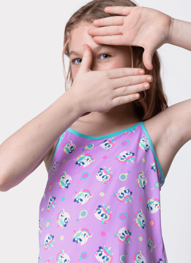 Short doll Microfibra Teen Uni Tenis • Alça regulável • Tecido: Microfibra de poliamida • Toque geladinho • Estampa de unicórnio • Tecido Externo: 93% Poliamida 7% Elastano • Como lavar e conservar bem meu produto: Lavagem a mão, Não alvejar, Não secar em tambor, Secagem em varal por gotejamento a sombra Não passar ou utilizar vaporização, Não limpar a seco, Não limpar a úmido • Garantia por defeito: Deverá ser encaminhado dentro da embalagem original; Sem indícios de uso; acompanhado de nota fiscal e com todos os itens constantes na solicitação de troca.