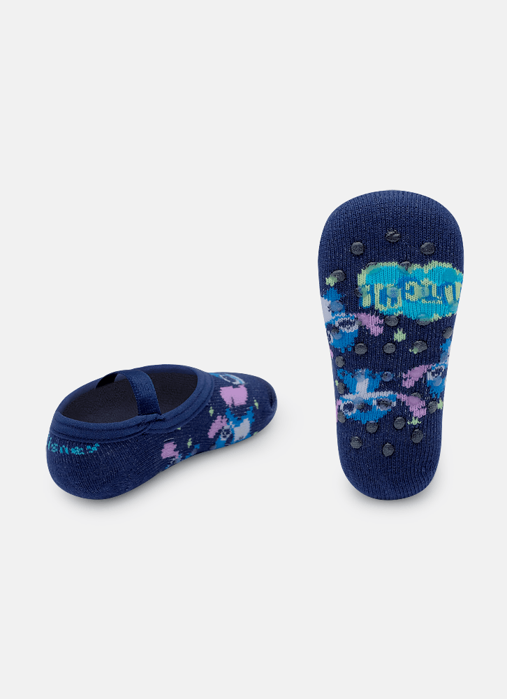 Meia com modelagem de sapatilha e desenho divertido de Stitch. Produzida com algodão macio e desenho em poliamida. Possui acabamento em viés e elástico confortável. Solado com antiderrapante. Indicação de uso: - Ideal para praticar exercícios e brincadeiras sem o calçado e uso no dia a dia. Instruções de Lavagem: - Lavagem a mão; - Não alvejar; Instruções de Conservação: - Não secar em tambor; - Não passar; - Não limpar a seco; (MAIS INFORMAÇÕES, VIDE NA ETIQUETA) Instruções de Garantia: Deverá ser encaminhado dentro na embalagem original acompanhado de nota fiscal e com todos os itens constante na solicitação da compra.