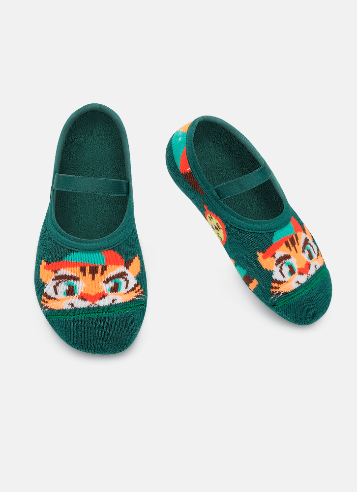 Meia com modelagem de sapatilha no tema tigre. Produzida com algodão macio e poliamida no desenho. Possui acabamento em viés e elástico confortável. Solado com antiderrapante com aroma de talco. Indicação de uso: Ideal para praticar exercícios e brincadeiras sem o uso de calçado e no dia a dia em casa. Instruções de Lavagem: Lavagem a mão Não alvejar Instruções de Conservação: Não secar em tambor Não passar Não limpar a seco (MAIS INFORMAÇÕES, VIDE NA ETIQUETA) Instruções de Garantia: Deverá ser encaminhado dentro na embalagem original, sem indicações de uso ACOMPANHADO DE NOTA FISCAL E com todos os itens constante na solicitação da compra.