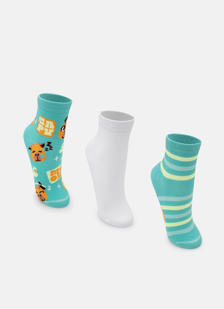 Kit com 3 Meias Cano Curto Unissex Teen Capy Bora