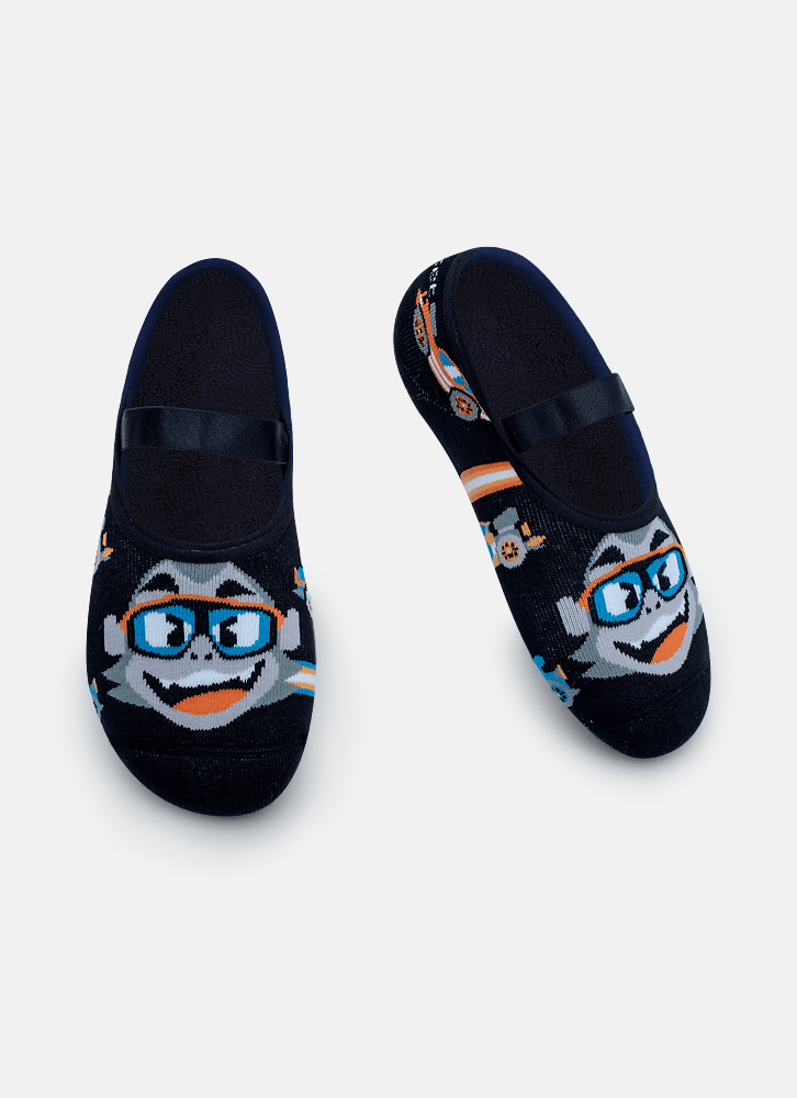 'Meia sapatilha desenhada no tema de Gorila Corrida Maluca. Produzida com algodão macio e desenho em poliamida. Possui acabamento em viés e elástico confortável. Solado com antiderrapante com aroma de menta. Indicação de uso: Ideal para praticar exercícios e brincadeiras sem o uso de calçado e no dia a dia em casa. Instruções de Lavagem: Lavagem a mão Não alvejar Instruções de Conservação: Não secar em tambor Não passar Não limpar a seco (MAIS INFORMAÇÕES, VIDE NA ETIQUETA) Instruções de Garantia: Deverá ser encaminhado dentro na embalagem original, sem indicações de uso ACOMPANHADO DE NOTA FISCAL E com todos os itens constante na solicitação da compra.'