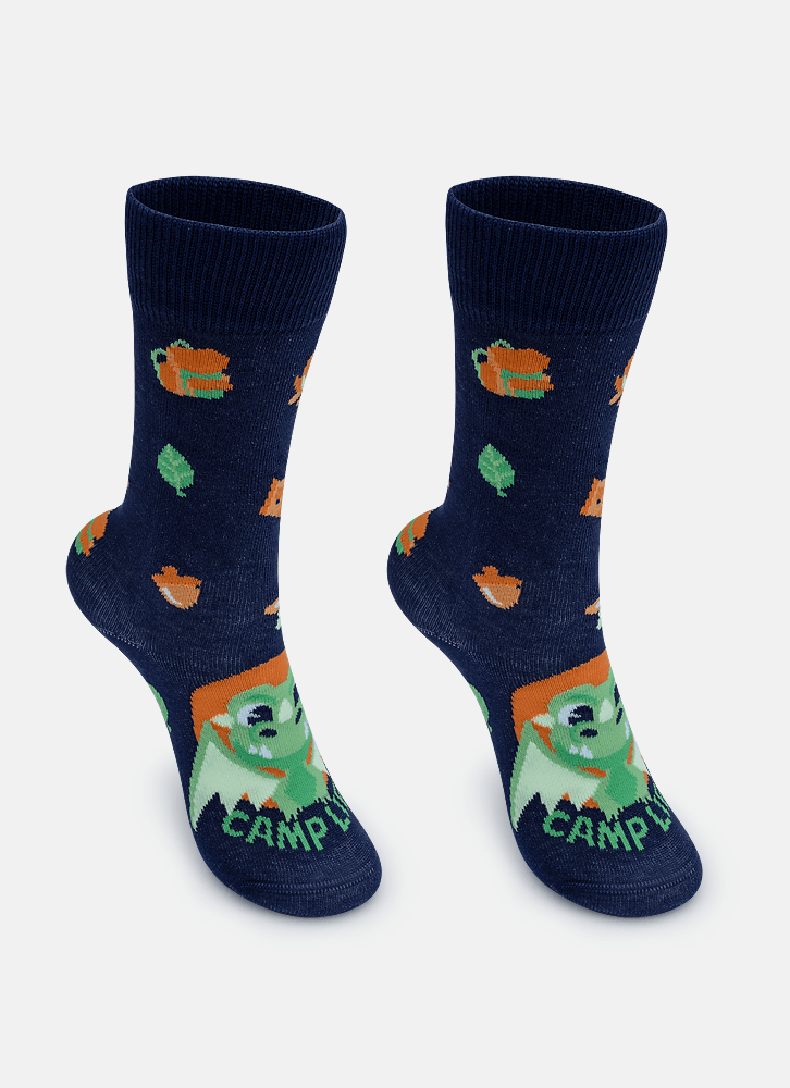 'Meia 3/4 com desenho tema Dragão Camping possui cano longo abaixo do joelho. É produzida com algodão macio em sua maior parte e poliamida nos desenhos Indicação de uso: Ideal para usar com calçados fechados. Instruções de Lavagem: Lavagem a mão Não alvejar Instruções de Conservação: Não secar em tambor Não passar Não limpar a seco (MAIS INFORMAÇÕES, VIDE NA ETIQUETA) Instruções de Garantia: Deverá ser encaminhado dentro na embalagem original, sem indicações de uso ACOMPANHADO DE NOTA FISCAL E com todos os itens constante na solicitação da compra.'