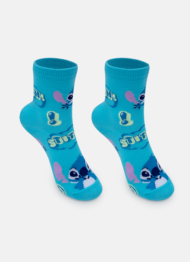 Meia soquete com desenho divertido de Stitch. Possui cano de altura média. Produzida com algodão macio em sua maior parte, e poliamida no desenho. Indicação de uso: Ideal para usar com calçados fechados. Instruções de Lavagem: Lavagem a mão Não alvejar Instruções de Conservação: Não secar em tambor Não passar Não limpar a seco (MAIS INFORMAÇÕES, VIDE NA ETIQUETA) Instruções de Garantia: Deverá ser encaminhado dentro na embalagem original, sem indicações de uso ACOMPANHADO DE NOTA FISCAL E com todos os itens constante na solicitação da compra.