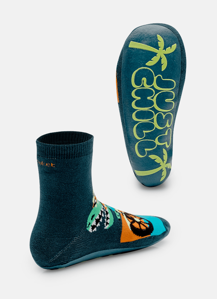 Meia Soquete Menino Com Sola Emborrachada Dino Miami
