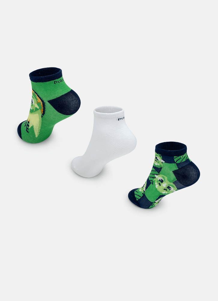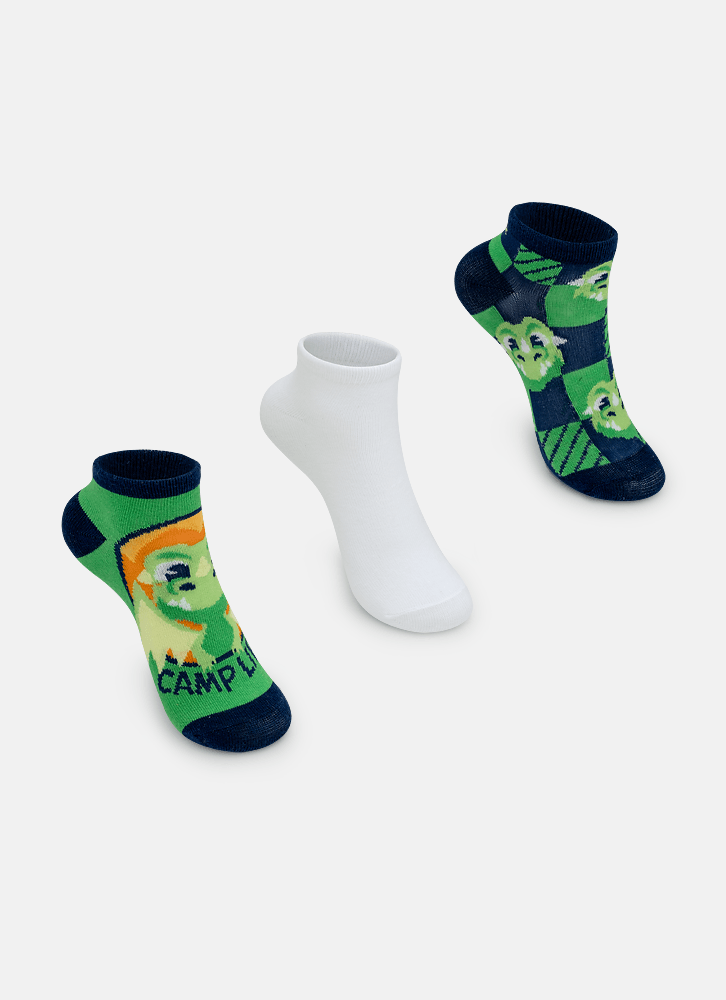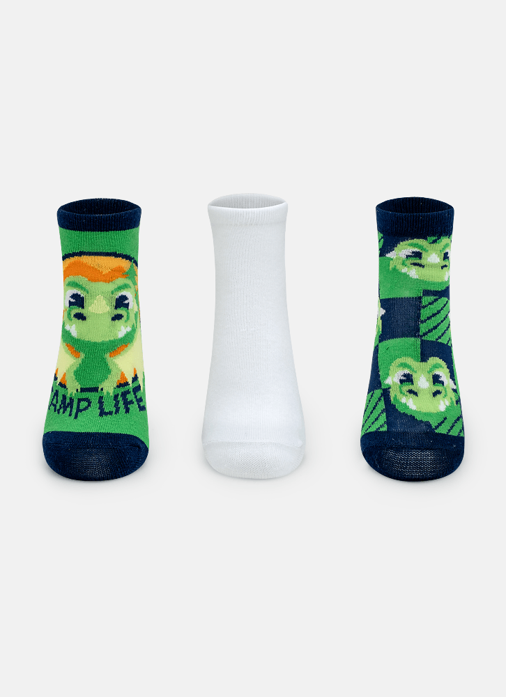'Kit com três pares de meias em algodão macio, sendo duas com desenhos divertidos de Dragão Camping e uma em cor lisa. Possuem cano confortável de altura na metade da canela. Indicação de uso: Ideal para usar com calçados fechados. Instruções de Lavagem: Lavagem a mão Não alvejar Instruções de Conservação: Não secar em tambor Não passar Não limpar a seco (MAIS INFORMAÇÕES, VIDE NA ETIQUETA) Instruções de Garantia: Deverá ser encaminhado dentro na embalagem original, sem indicações de uso ACOMPANHADO DE NOTA FISCAL E com todos os itens constante na solicitação da compra.'