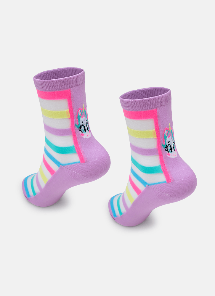 Meia Soquete Transparente Menina Unicórnio Tênis