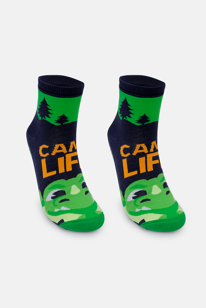 Meia Soquete com Sola Emborrachada Menino Teen Dragão Camping