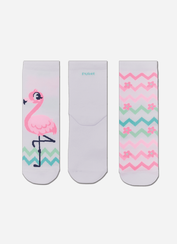 Kit com 3 Meias Soquete Menina Flamingo