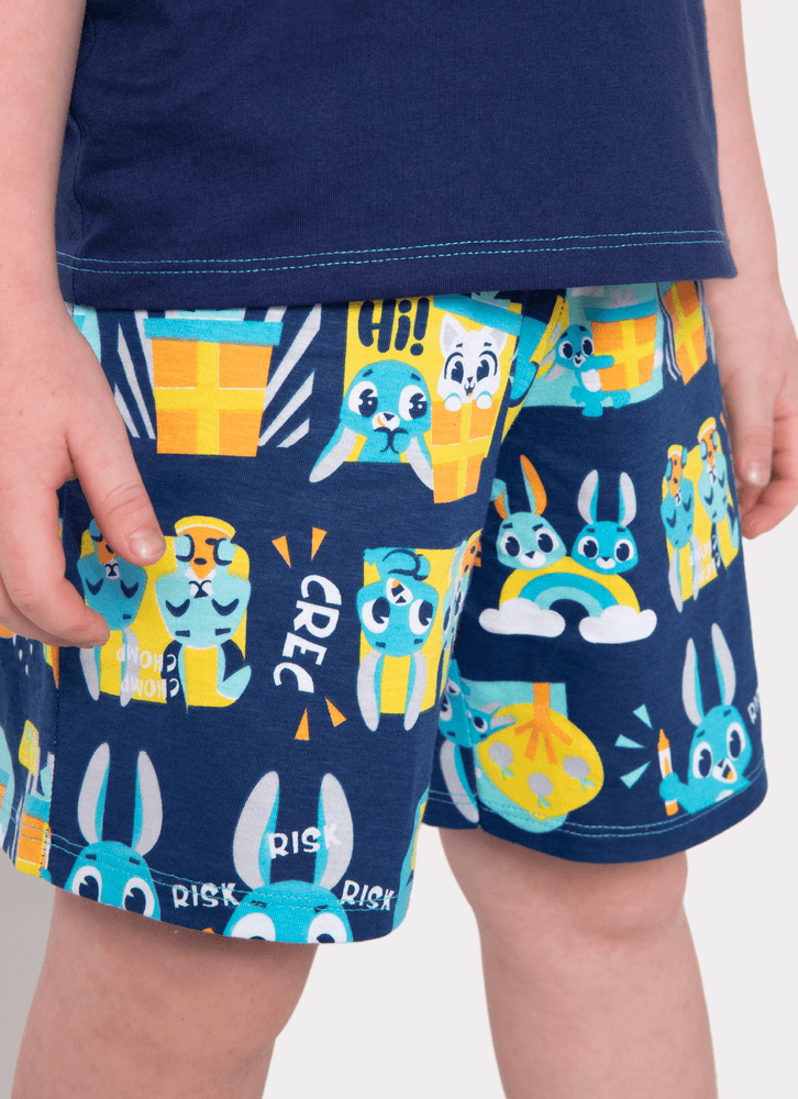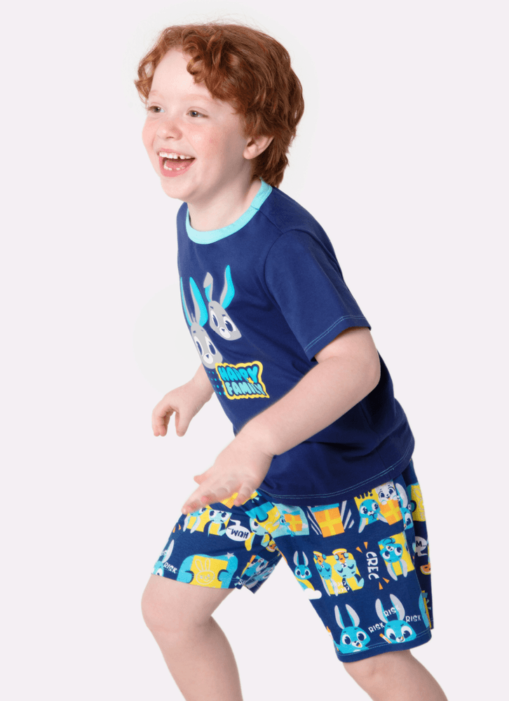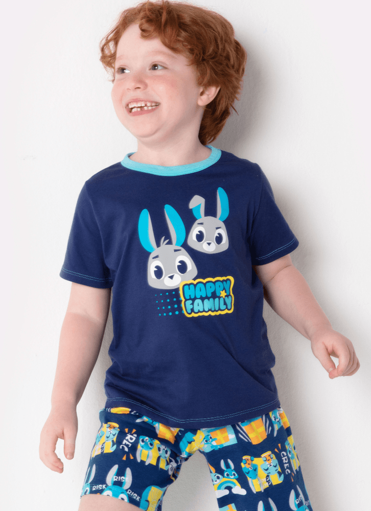 Pijama Manga Curta Menino Algodão Família Coelho