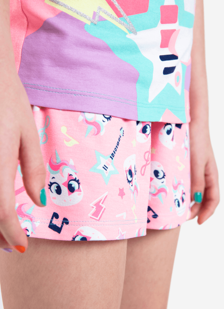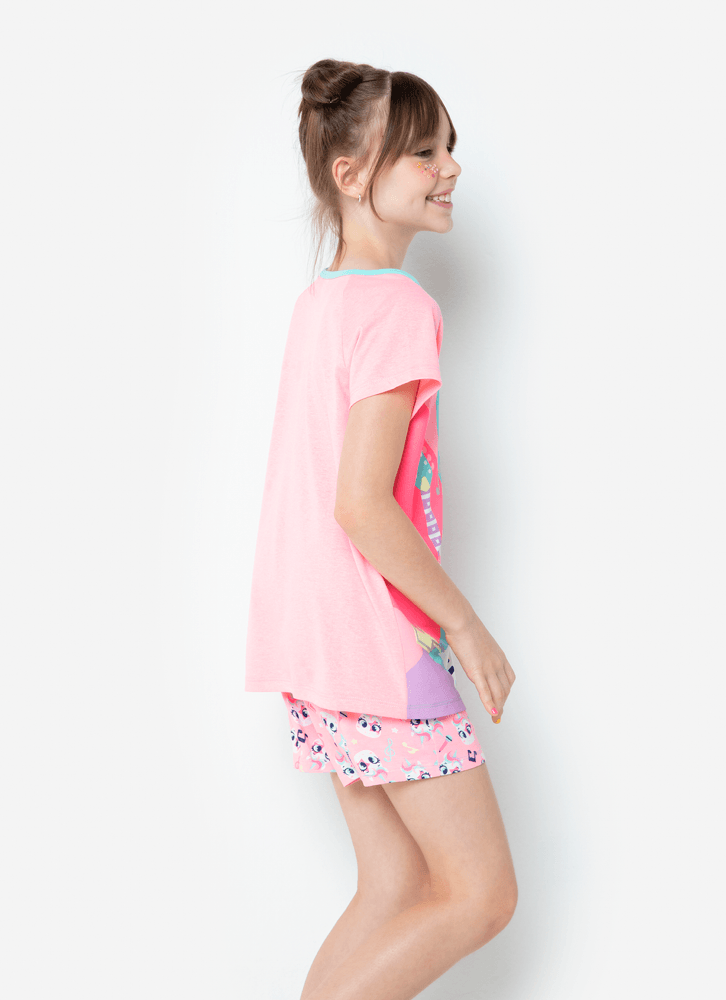 Pijama Manga Curta Menina Teen Viscolycra Unicórnio Popstar