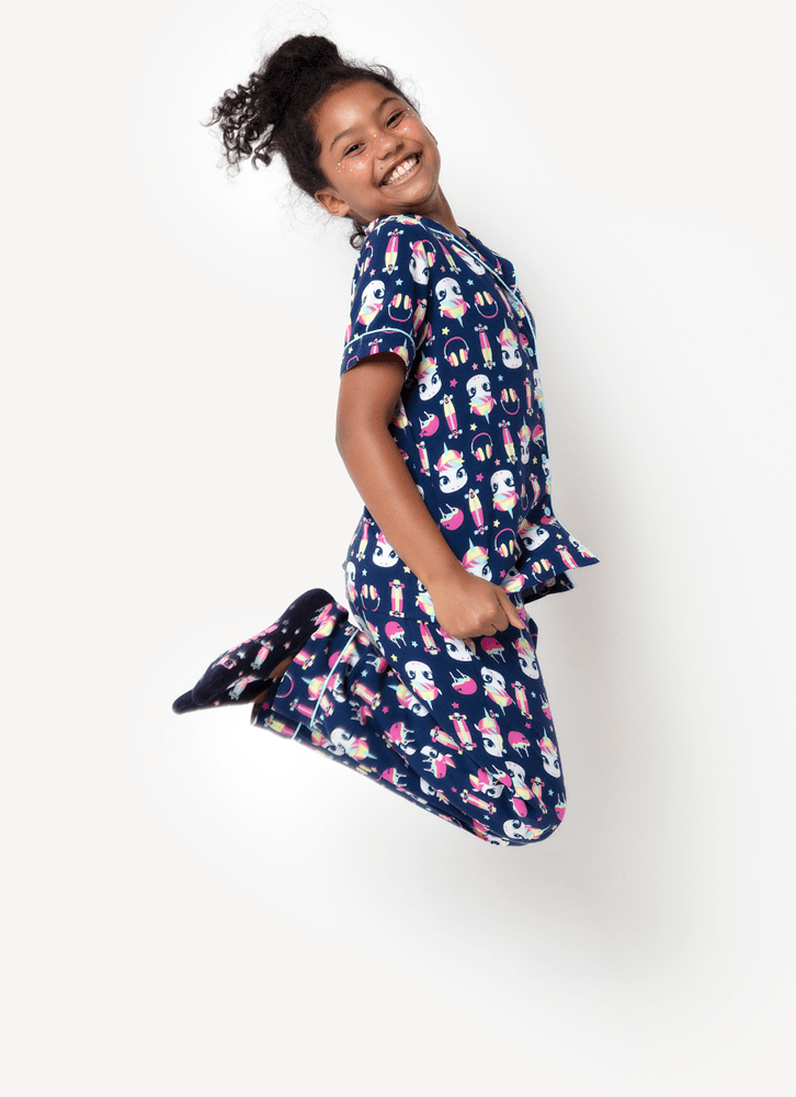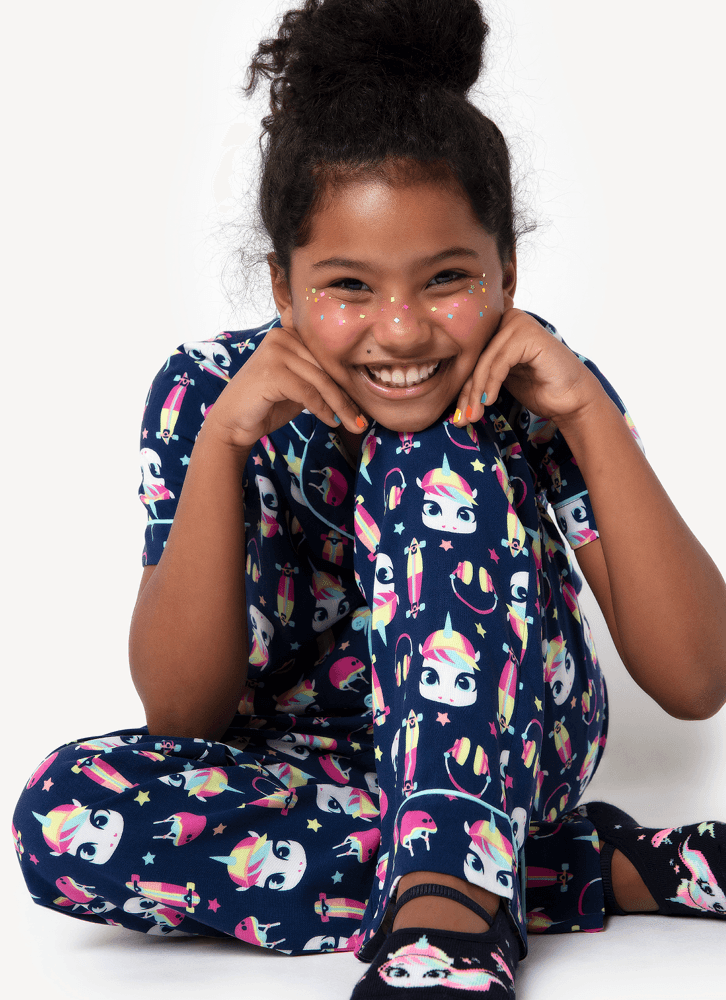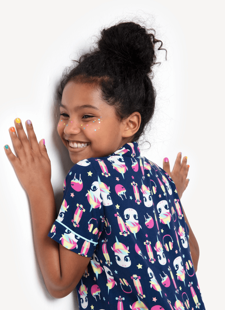 Pijama Longo Manga Curta Menina Teen Viscose Unicórnio Skate