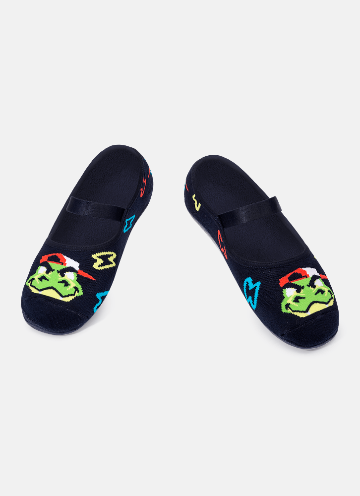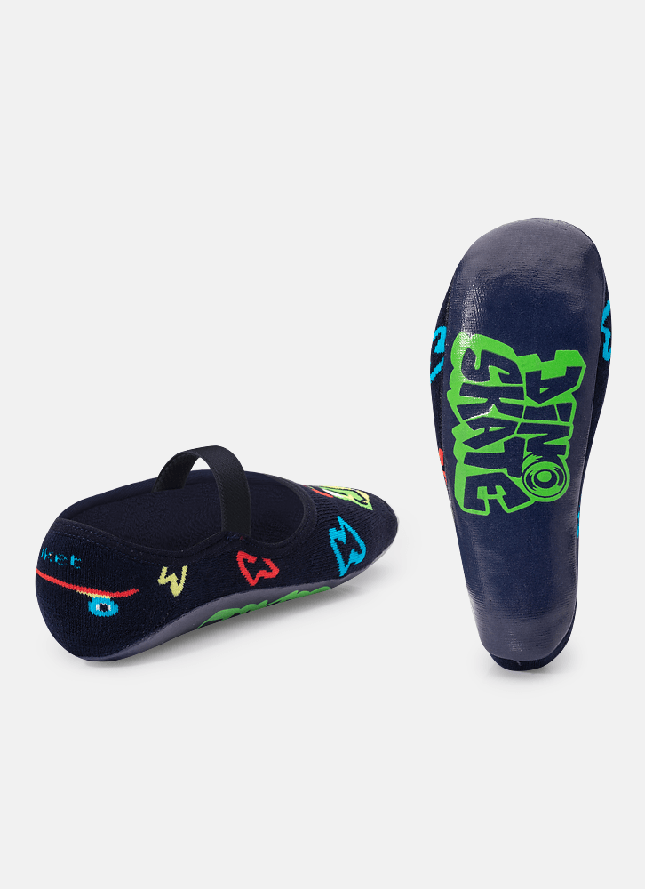 Meia Sapatilha com Sola Emborrachada Menino Dinossauro Skate